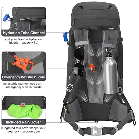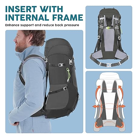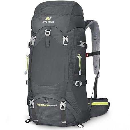 N NEVO RHINO Internal Frame Hiking Backpack 50/60/65/70/80L, Mountain Climbing Camping Backpack Daypack Waterproof Rain Cover