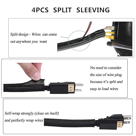 Thông tin sản phẩm N NOROCME 192 PCS Cable Management Kit 4 Wire Organizer Sleeve,11 Cable Holder,35Cord Clips 10+2 Roll Cable Organizer Straps and 100 Fastening Cable Ties for Computer TV Under Desk, black,clear
