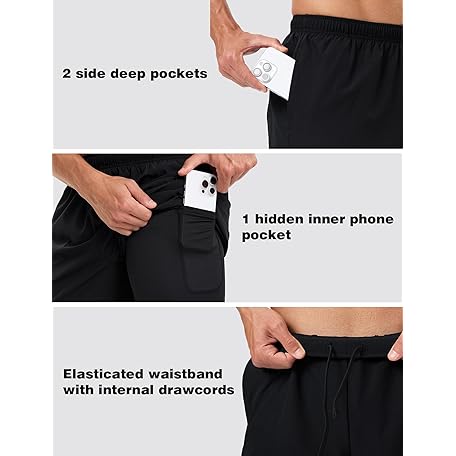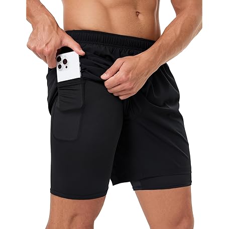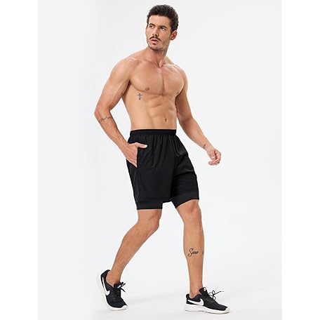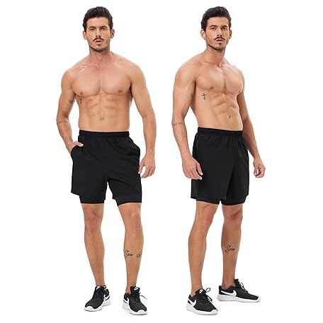 • Naarts Men's 2 in 1 Athletic Running Shorts Quick Dry 5 Inch Lightweight Workout Gym Shorts with Liner and Pockets