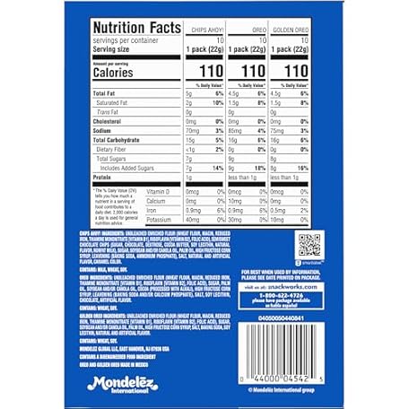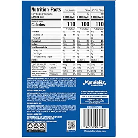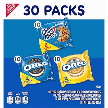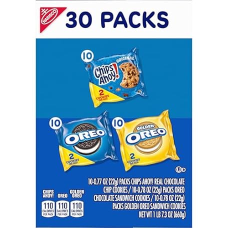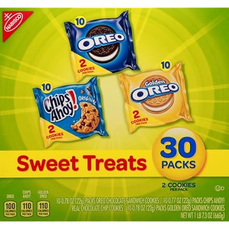 Thông tin sản phẩm Nabisco Sweet Treats Cookie Variety Pack OREO, OREO Golden & CHIPS AHOY!, 30 Snack Packs (2 Cookies Per Pack) (Pack of 2)