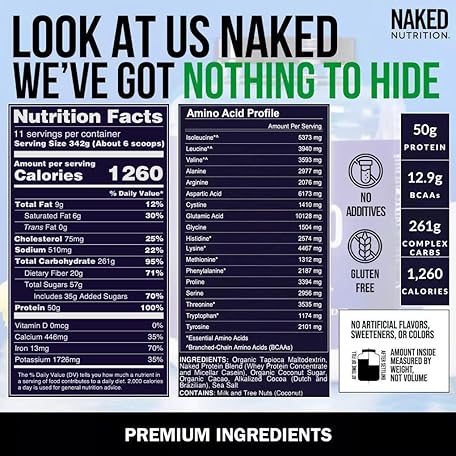 Thông tin sản phẩm NAKED Double Chocolate Mass - 1,260 Calories, 50G Protein, Nothing Artificial. All Natural Weight Gainer Protein Powder - 8Lb Bulk, GMO Free, Gluten Free & Soy Free