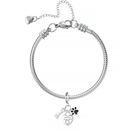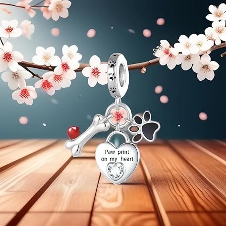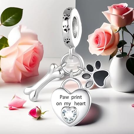 • NanMuc Heart Paw Print Charm Compatible With Pandora Bracelet Puppy Dog Pet Dangle Charm Aninmal Bead
