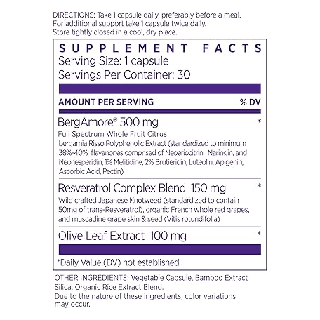 Thông tin sản phẩm NAOMI Italian Citrus Bergamot 500mg + Resveratrol, Award-Winning Cardiologist Dvlpd, Supports Normal Cholesterol & Healthy Cellular Function, 7 Key Polyphenols, Resveratrol & Olive Leaf, 30-Day Supply