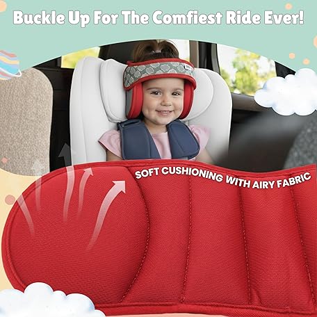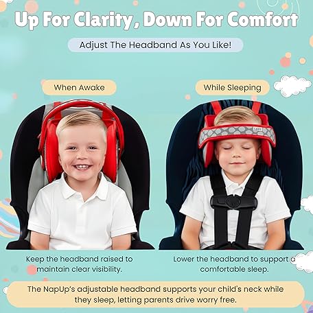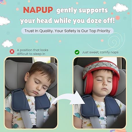 • NAPUP Adjustable Carseat Head Support for Sleeping Kids & Toddlers - Safe, Comfortable & Breathable (Red)