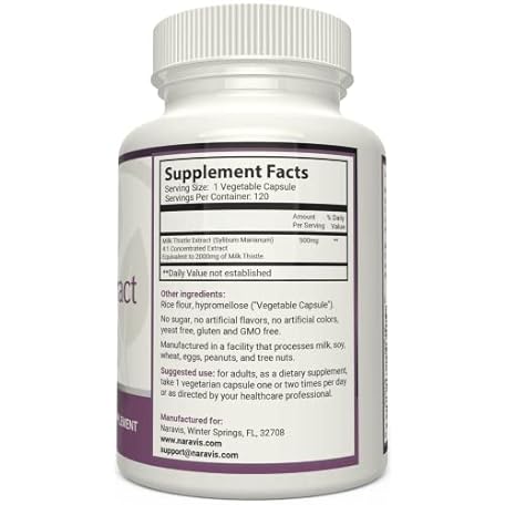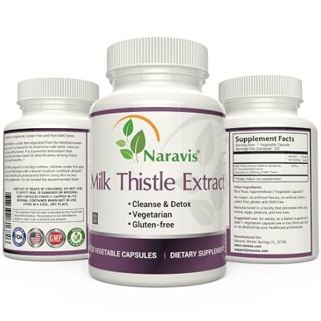 Sản phẩm Naravis Milk Thistle Extract - 4:1 Extract - 2000mg - 120 Capsules - Supports Liver Health - Non GMO đang được bán với giá ưu đãi là $19.5873 tại nước Mỹ.