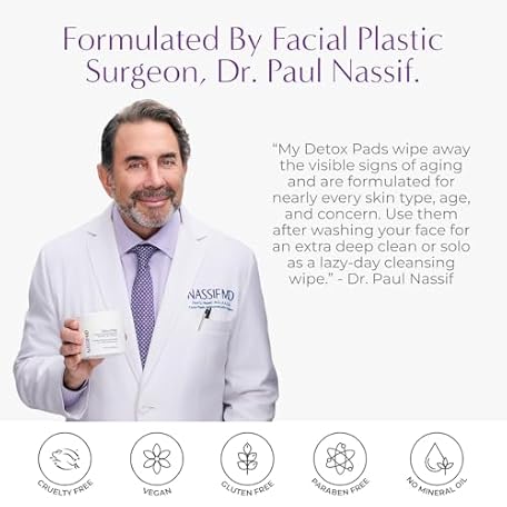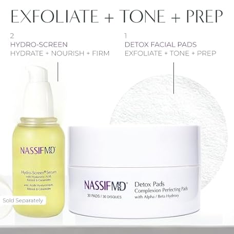 Thông tin sản phẩm NassifMD Exfoliating Detox Pads | Surgeon-Created AHA/BHA Facial Pads for Deep Cleansing, Smoother Texture & Glowing Skin | Reduces Pores, Firms, Brightens
