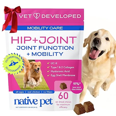 Native Pet Hip & Joint Supplement for Dogs - Advanced Dog Joint & Arthritis Supplement - Helps Maintain Healthy Cartilage, Joint Flexibility, Lubrication, & Function - with ESM & Collagen - 60 Chews