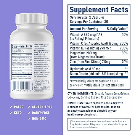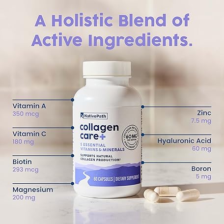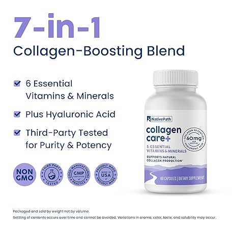 Thông tin sản phẩm NativePath Collagen Care+, 5 Vitamin Blend with Hyaluronic Acid and Boron That Supports Collagen for Men and Women, 60 Capsules