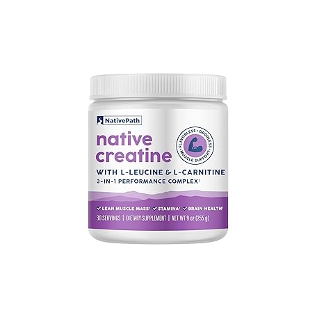 • NativePath Creatine Monohydrate Powder with L-Leucine & L-Carnitine - Muscle Building Supplement for Men & Women - 30 Servings