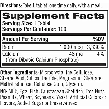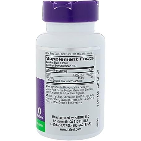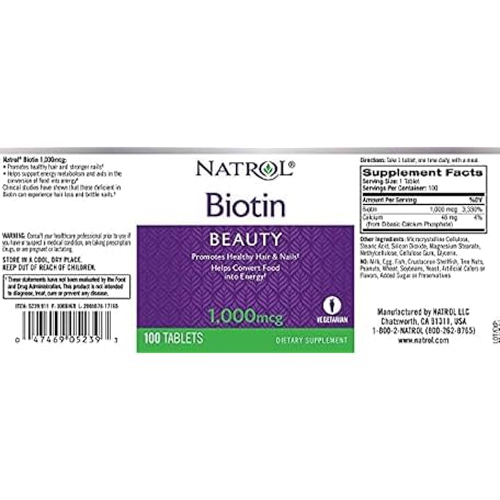 Thông tin sản phẩm Natrol Biotin, Maximum Strength, 10,000 mcg Tablets 100 ea (Pack of 4)