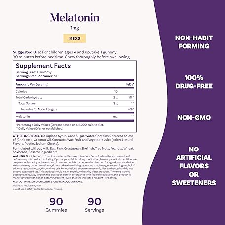 Thông tin sản phẩm Natrol Kids Melatonin Gummies 1mg, Children's Melatonin for Restful Sleep, 90 Raspberry-Flavored Sleep Gummies, 90 Day Supply