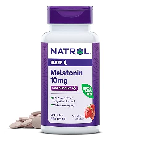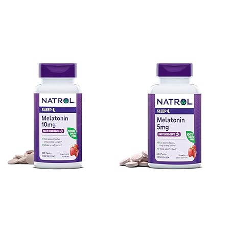 • Natrol Melatonin 10mg 200 Tablets & 5mg 200 Tablets Strawberry-Flavored Fast-Dissolve Sleep Support Dietary Supplement Bundle