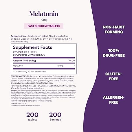 Thông tin sản phẩm Natrol Melatonin 10mg Fast Dissolve Tablets - Strawberry Flavor, 200 Count, Sleep Support, Fast Dissolve Melatonin for Adults, 200-Day Supply