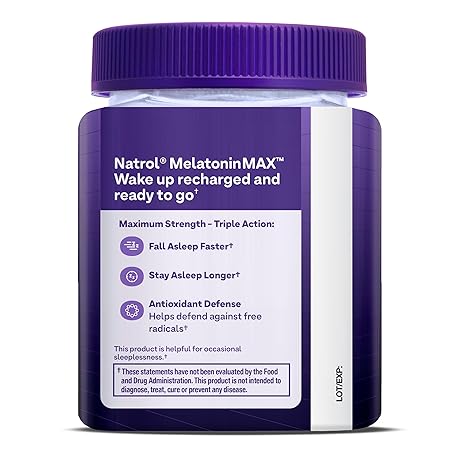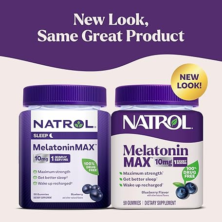 Thông tin sản phẩm Natrol Melatonin 10mg Sleep Aid Supplement, 50 Count MelatoninMax Gummies, Blueberry Flavor, 10 mg Melatonin Gummies for Occasional Sleeplessness, 50 Day Supply