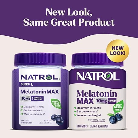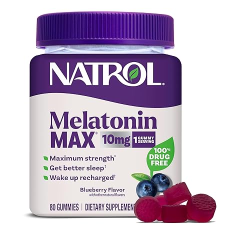 Thông tin sản phẩm Natrol Melatonin 10mg Sleep Aid Supplement, 80 Count MelatoninMax Gummies, Blueberry Flavor, 10 mg Melatonin Gummies for Occasional Sleeplessness, 80 Day Supply