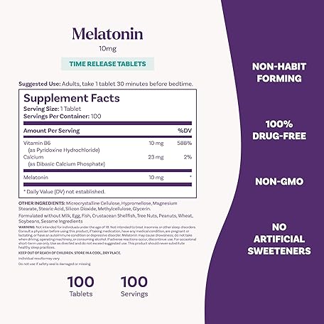 Thông tin sản phẩm Natrol Melatonin 10mg Time Release Tablets, Sleep Dietary Supplement for Restful Sleep, 100 Melatonin Time Release Tablets, 100 Servings