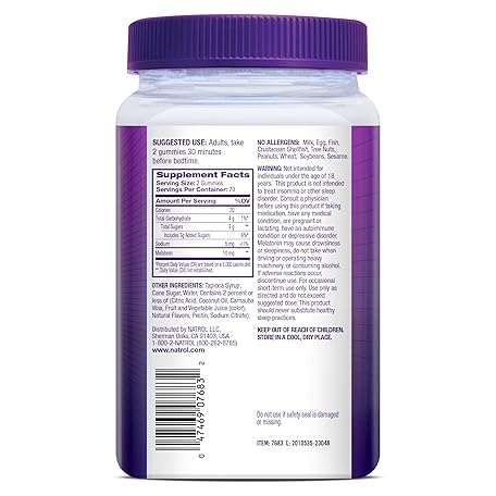 Thông tin sản phẩm Natrol Melatonin Gummies, Sleep Support for Adults, Melatonin 10 mg, 140 Strawberry-Flavored, Up to 70 Days