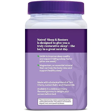 Thông tin sản phẩm Natrol Sleep & Restore Magnesium Glycinate Blend Gummies, Magnesium for Sleep Aids for Adults, Melatonin-Free, Cherry Flavored, 30 Day Supply