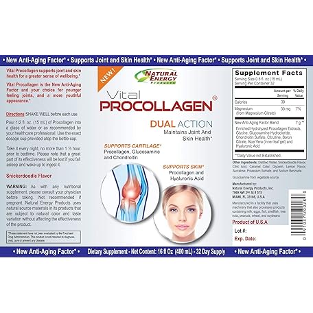 Sản phẩm Natural Energy Vital Procollagen - Liquid Hydrolyzed Collagen Protein with Hyaluronic Acid and Glucosamine Chondroitin Sulfate Anti-Aging Factor for Men and Women 16oz |New Snickerdoodle Flavor| đang được bán với giá ưu đãi là $56.9743 tại nước Mỹ.