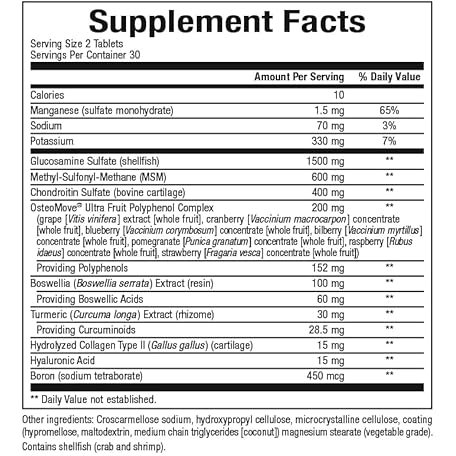 Thông tin sản phẩm Natural Factors, OsteoMove Joint Care, Extra Strength Support for Joint and Bone Health, Non-GMO, 60 tablets (30 servings)