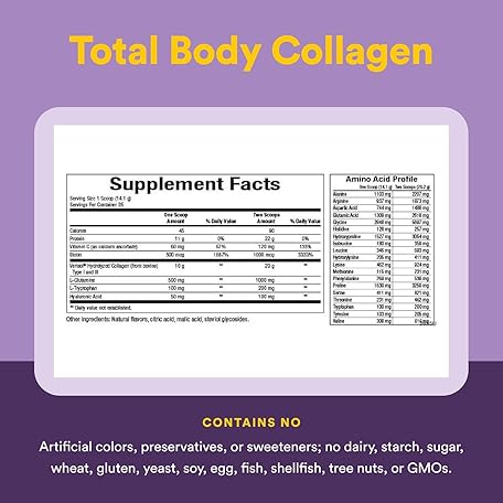 Thông tin sản phẩm Natural Factors Total Body Collagen - Bioactive Collagen Supplement for Hair & Nail Growth Support - Healthy Skin Supplement with Protein, Vitamin C & More - Pomegranate, 500 g (38 Servings)