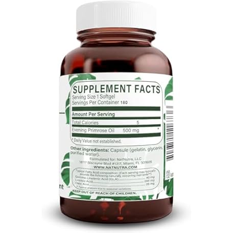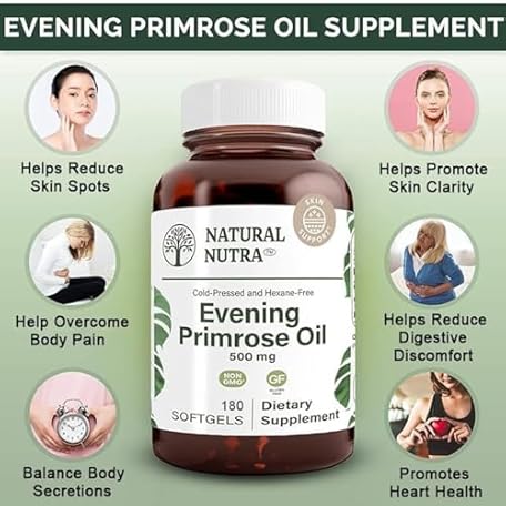 Thông tin sản phẩm Natural Nutra Evening Primrose Oil Supplement from Fatty Acid, Helps Overcome Body Pain, Nerve Health, Promote Hearth Health & Skin Clarity, Helps Reduce Digestive Discomfort, 500 mg, 180 Softgel
