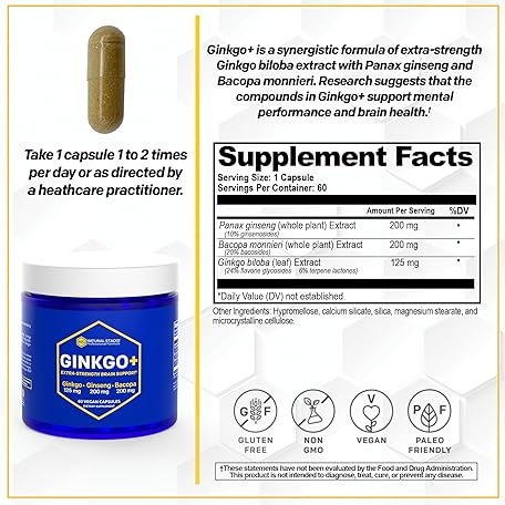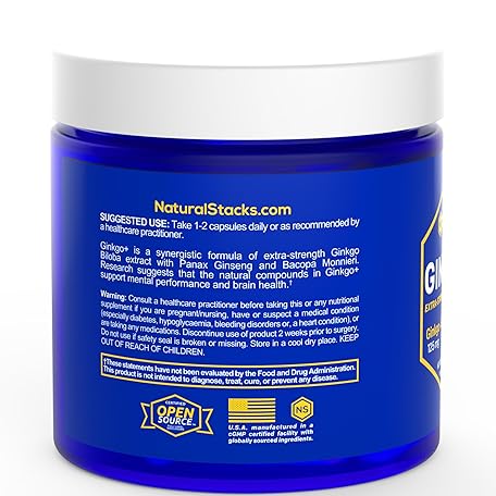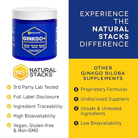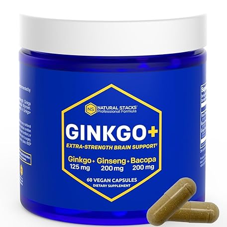 Sản phẩm NATURAL STACKS Ginkgo Biloba Supplement with 200mg Panax Ginseng & 200mg Bacopa Monnieri - Brain Supplements for Memory and Focus - Korean Ginseng for Brain Health Support - 60 Ginkgo Biloba Capsules đang được bán với giá ưu đãi là $26.1055 tại nước Mỹ.