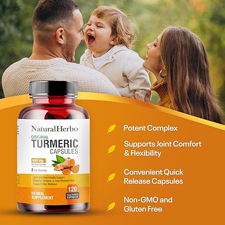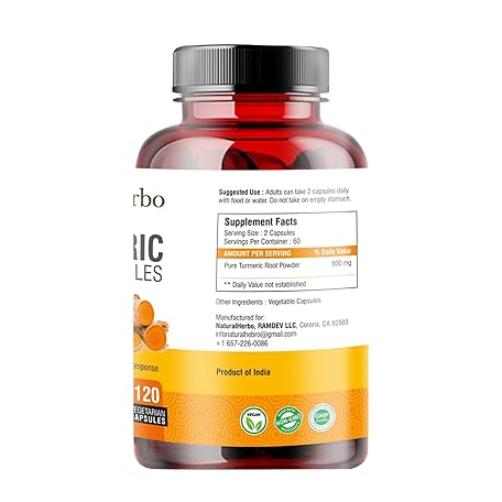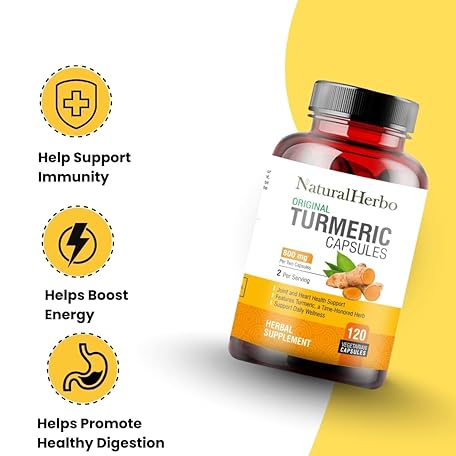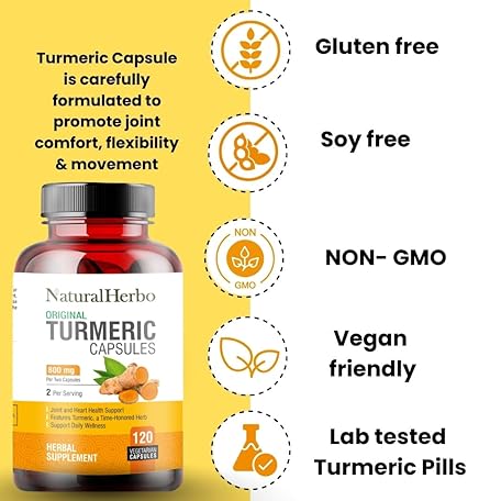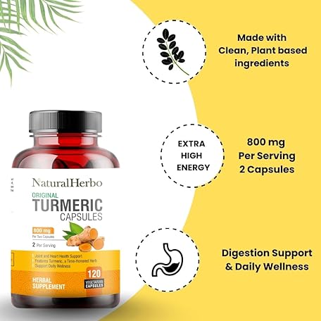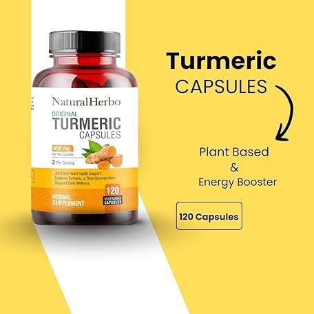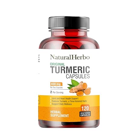 NaturalHerbo Turmeric Capsules - High Potency Turmeric Root Capsules for Joint Support, Mobility, and Wellness – Non-GMO, Gluten-Free, Vegan, Turmeric Supplement,120 Capsules - 800mg