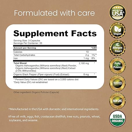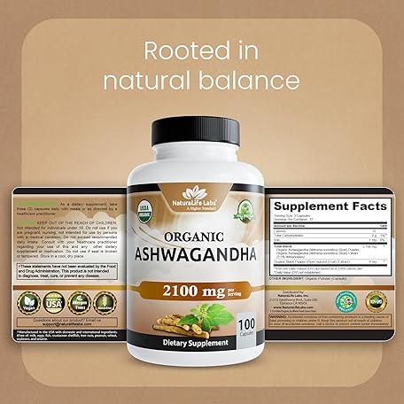 Thông tin sản phẩm NaturaLife Labs Organic Ashwagandha 2100 mg per Serving – Root Powder & Extract – 100 Capsules – Vegan, Non-GMO, Gluten-Free