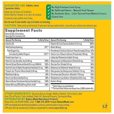 Thông tin sản phẩm Nature Made Advanced Multivitamin Gummies for Adults, Women's and Men's Multivitamin Gummies with Magnesium Citrate, Calcium & B Vitamins, Daily Support, 90 Gummies, 30 Day Supply