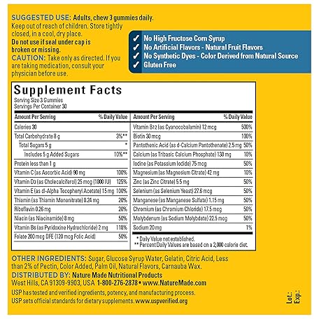 Thông tin sản phẩm Nature Made Advanced Multivitamin Gummies for Him with Magnesium Citrate, Calcium & All 8 B Vitamins, Multivitamin for Men, 90 Gummies, 30 Day Supply