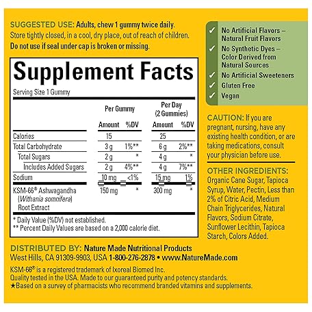 Thông tin sản phẩm Nature Made Ashwagandha Gummies, Vegan, KSM 66 Ashwagandha for Stress Support, 60 Count, 30 Day Supply