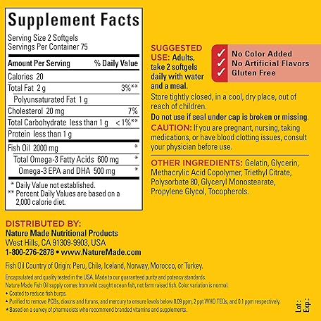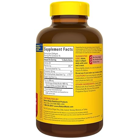 Thông tin sản phẩm Nature Made Burp Less Fish Oil Omega 3 Supplements, 1000mg Softgels, Omega 3 Fish Oil Supplements for Healthy Heart Support, 150 Softgels, 75 Day Supply