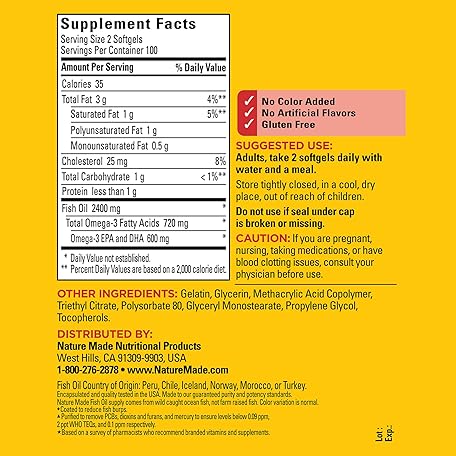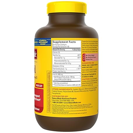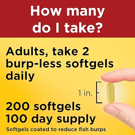 Thông tin sản phẩm Nature Made Burp Less Fish Oil Omega 3 Supplements, 1200 mg Softgels, Omega 3 Fish Oil for Healthy Heart Support, 200 Softgels, 100 Day Supply