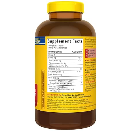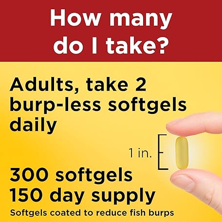 Thông tin sản phẩm Nature Made Burp Less Fish Oil Omega 3 Supplements, 1200 mg Softgels, Omega 3 Fish Oil for Healthy Heart Support, 300 Softgels, 150 Day Supply
