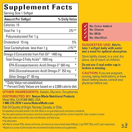 Thông tin sản phẩm Nature Made Burp Less Ultra Omega 3 Fish Oil Supplements, 1400mg Fish Oil Omega 3 Supplements as Ethyl Esters for Healthy Heart Brain Eyes Support, One Per Day, 90 Softgels