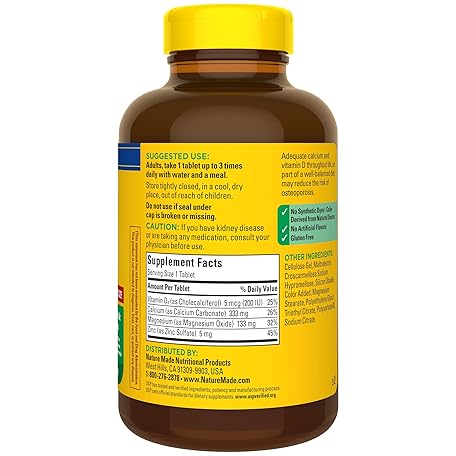 Thông tin sản phẩm Nature Made Calcium Magnesium Zinc with Vitamin D3, Dietary Supplement for Bone Support, 300 Tablets