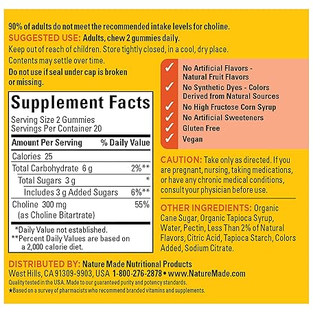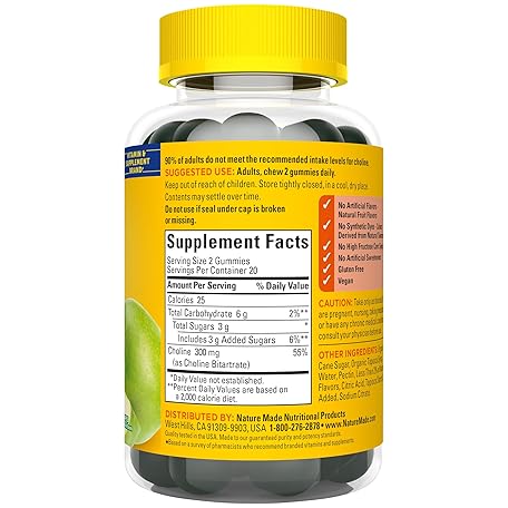 Thông tin sản phẩm Nature Made Choline Supplements, Supports Liver Health, Nervous System Function and Brain Health, 40 Vegan Gummies, 20 Day Supply