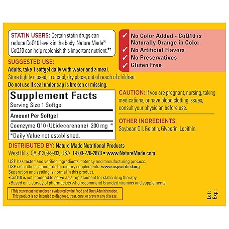 Thông tin sản phẩm Nature Made CoQ10 200mg, Dietary Supplement for Heart Health Support, 105 Softgels, 105 Day Supply