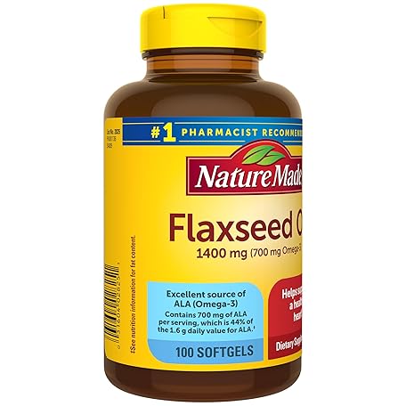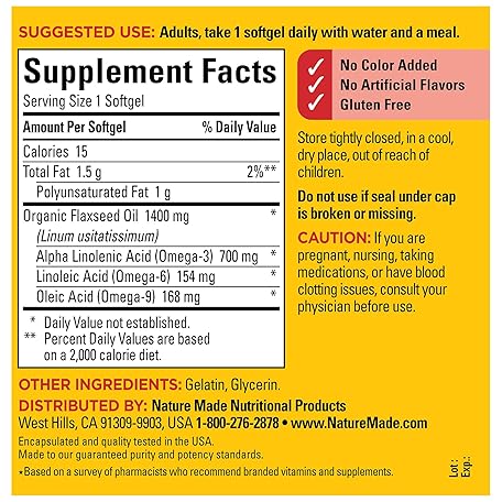 Thông tin sản phẩm Nature Made Extra Strength Flaxseed Oil 1400 mg, Fish Free Omega 3 Supplement, Dietary Supplement for Heart Health Support, 100 Softgels, 100 Day Supply