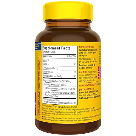 Thông tin sản phẩm Nature Made Extra Strength Omega 3 Fish Oil Supplements, 1400mg, Fish Oil Omega 3 Supplements as Ethyl Esters for Healthy Heart, Brain, Eyes, Mood Support, 45 Softgels, 45 Day Supply