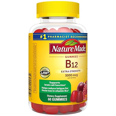Sản phẩm Nature Made Extra Strength Vitamin B12 Gummies, 3000 mcg per serving, B12 Vitamin Supplement for Energy Metabolism Support, 60 Gummy Vitamins, 30 Day Supply đang được bán với giá ưu đãi là $8.5674 tại nước Mỹ.