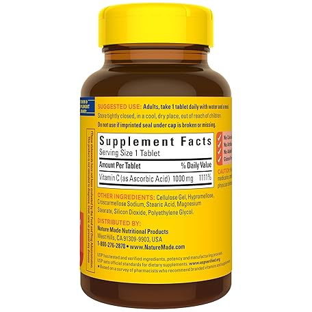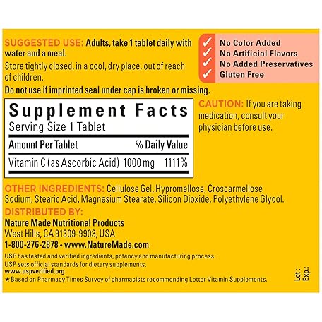 Thông tin sản phẩm Nature Made Extra Strength Vitamin C 1000 mg, Dietary Supplement for Immune Support, 100 Tablets, 100 Day Supply