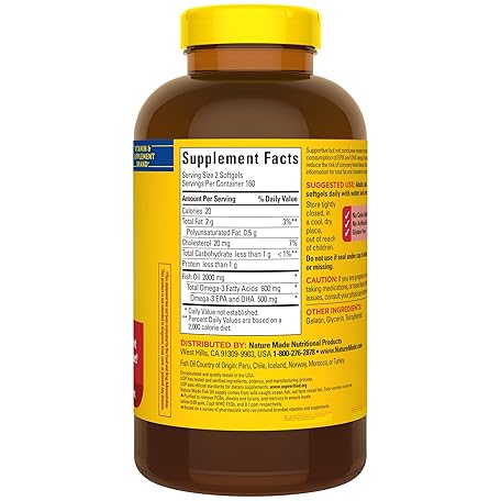 Thông tin sản phẩm Nature Made Fish Oil Omega 3 Supplements, 1000mg Softgels, Omega 3 Fish Oil for Healthy Heart Support, 320 Softgels, 160 Day Supply