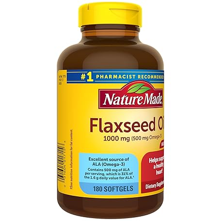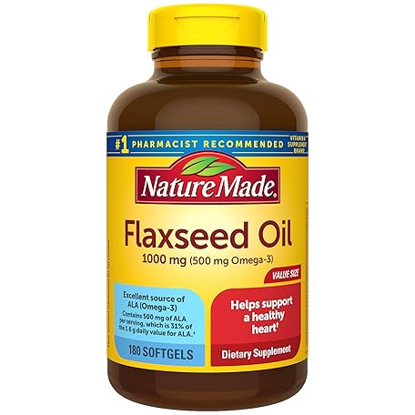 Sản phẩm Nature Made Flaxseed Oil 1000 mg, Fish Free Omega 3 Supplement, Dietary Supplement for Heart Health Support, 180 Softgels, 180 Day Supply đang được bán với giá ưu đãi là $14.5406 tại nước Mỹ.