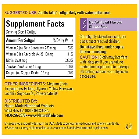 Thông tin sản phẩm Nature Made Hair Skin and Nails with Biotin 2500 mcg, Dietary Supplement For Healthy Hair Skin and Nails Support, 120 Softgels, 120 Day Supply