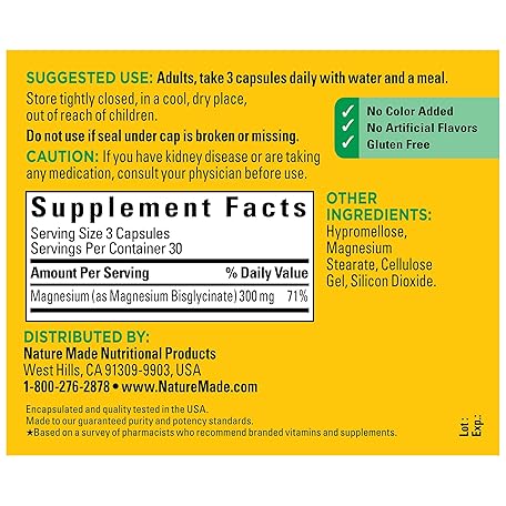 Thông tin sản phẩm Nature Made High Absorption Magnesium Glycinate 300mg per 3 Capsules, Magnesium Supplement for Muscle, Heart, Nerve and Bone Support, 90 Magnesium Bisglycinate Capsules, 30 Day Supply