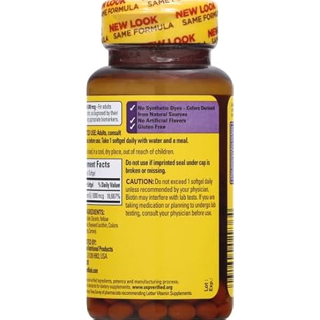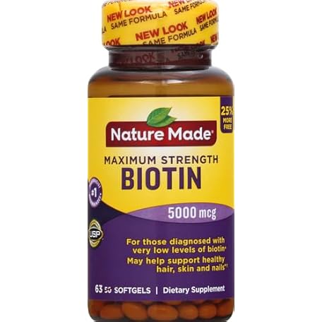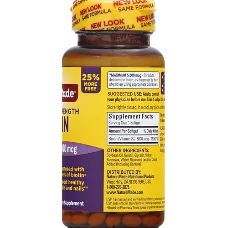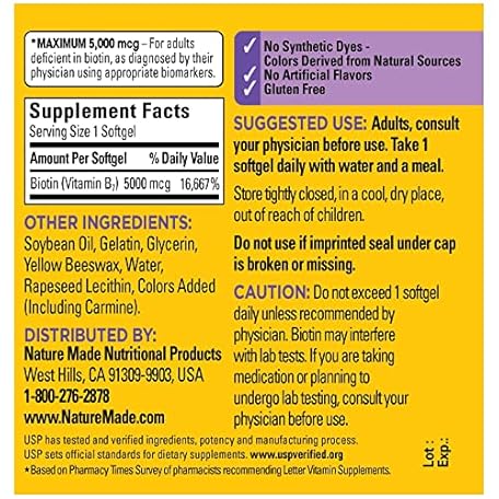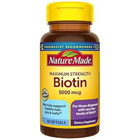 Nature Made Maximum Strength Biotin 5000 mcg, Dietary Supplement may help support Healthy Hair, Skin & Nails, 50 Softgels