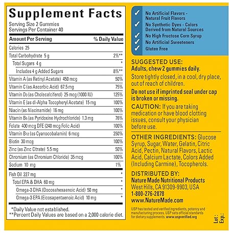 Thông tin sản phẩm Nature Made Mens Multivitamin Gummies with Omega-3, Mens Gummy Multivitamins for Daily Nutritional Support, 80 Gummy Vitamins and Minerals, 40 Day Supply