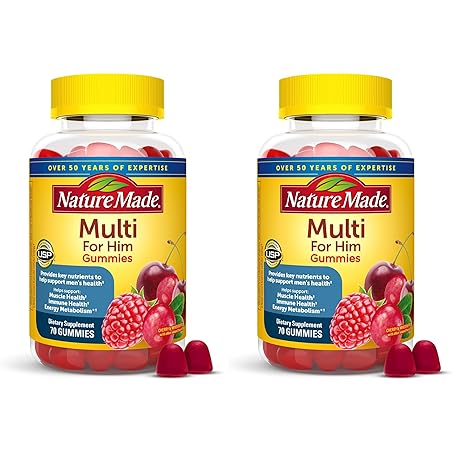 Thông tin sản phẩm Nature Made Multi for Him, Mens Multivitamins Gummies, Energy Metabolism Support, Multivitamin for Men, 70 Gummy Vitamins and Minerals, 35 Day Supply (Pack of 2)